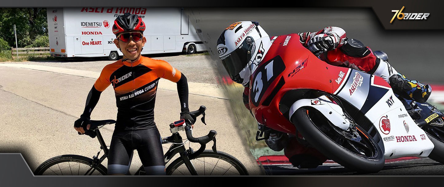 Termasuk ketika 76 Rider menunjuk Gerry sebagai ambassador sejak 2017. “Gerry merasa beruntung sekali karena masih bisa dapat support lagi. Kalau sama Honda, saya harus latihan di Jakarta. Nah sama 76Rider ini saya bisa latihan dengan terjamin di Gelora Bung Tomo, Surabaya,” syukur Gerry.